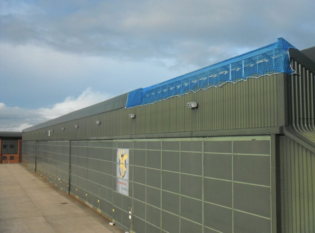 Due to the nature of the works required, a quick response was paramount. Within 24 hours Horizon had actioned the works, and arranged for a team of specialist steeplejack operatives to attend site, and undertake the installation of safety netting using MEWP access. This was installed to prevent the risk of FOD (Foreign Object Debris) occurring, which had the potential to cause a disastrous and costly incident.